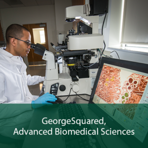 GeorgeSquared (Advanced Biomedical Sciences) is a collaboration between George Mason and Georgetown Universities that offers a nine-month pre-health preparatory, graduate-level program designed to help qualify students for medical, dental, or other health professional schools.