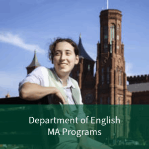 The Masters in English at Mason offers several tracks that represent the breadth of contemporary English studies. You can work in and across concentrations in literature, professional and technical writing, rhetoric, cultural studies, film, folklore, linguistics, and the teaching of writing and literature. In each concentration, you will enhance your skills in reading, writing, and research. Students use the degree for professional enhancement, or as an entry into teaching, professional writing, or doctoral study.