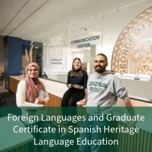 The Accelerated Master of Arts in Foreign Languages with concentrations in Chinese, French, Korean, and Spanish provides students with the opportunity to deepen their cultural and linguistic expertise as well as save time and money. Advanced GMU undergraduate students interested in pursuing careers in education, government, non-governmental organizations, international relations, translation, business, and others are encouraged to apply.