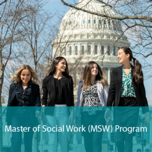 Mason’s Master of Social Work (MSW) program is committed to student centered learning to prepare professional social workers with the skills and knowledge to advance human rights and to promote well-being by ensuring economic, environmental, and social justice for all persons and communities. Students can apply to a fully online or an on-campus program