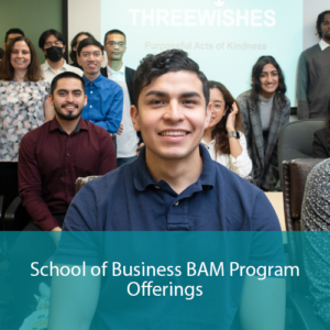 The School of Business develops career-ready business graduates through rigorous, stimulating business programs based on a global perspective, industry demand, and leadership. Come learn about our specialized degrees including MS in Finance, MS in Accounting, MS in Business Analytics, and MS in Real Estate Development.